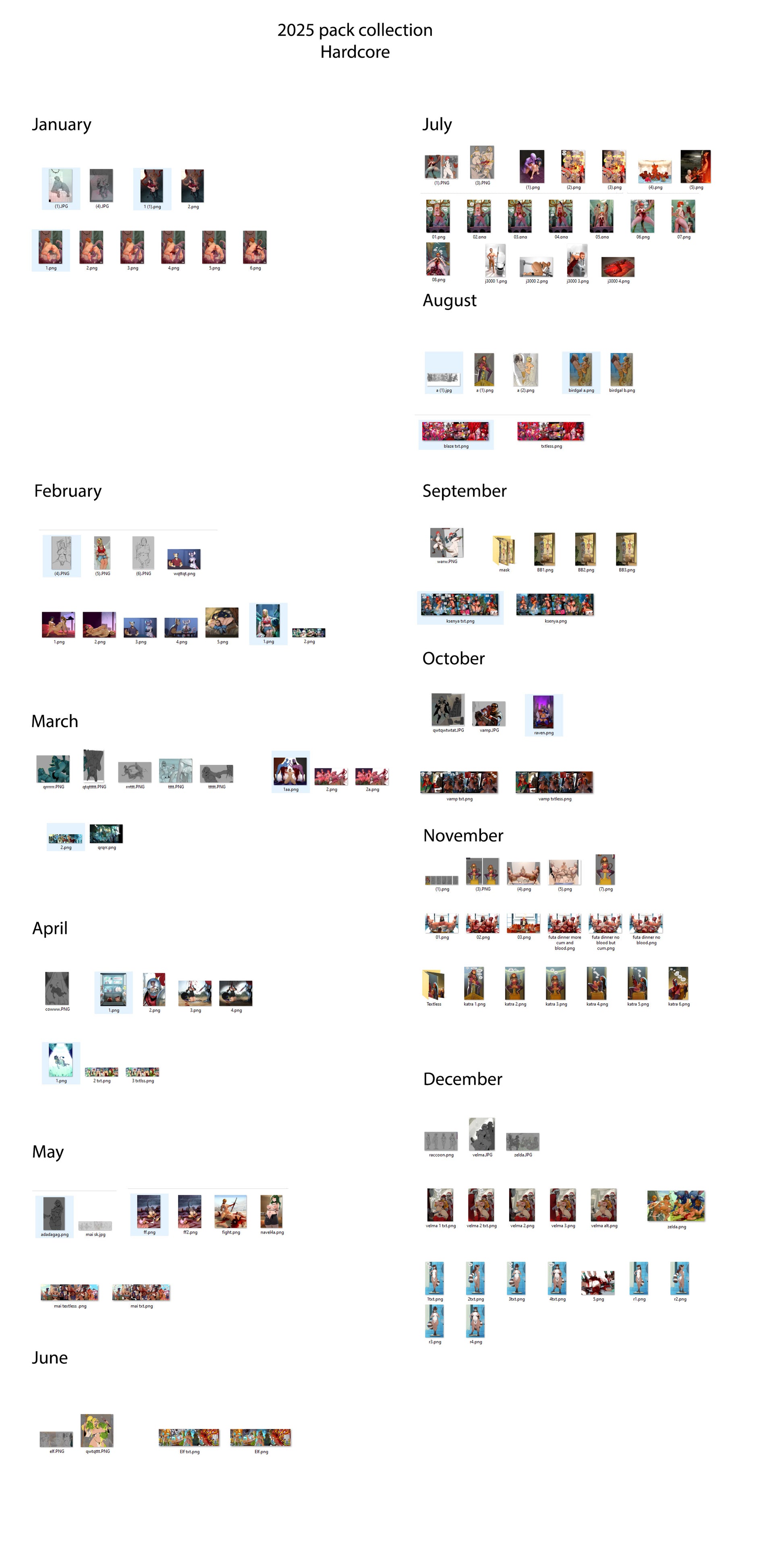 (There may be some duplicates due to some stuff belonging to hardcore scenario while being vanilla or vice versa)